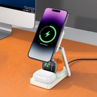 Бездротовий зарядний пристрій Hoco CQ10 3в1 milky, білий | беспроводное зарядное устройство