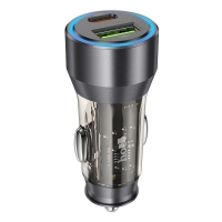 Автомобильний зарядний пристрій Hoco NZ12A USB/ Type-C PD 43W transparent, чорний | зарядка, зарядное устройство