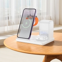 Беспроводное зарядное устройство Hoco CQ9 3в1 с часами white
