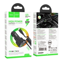 Автомобильное зарядное устройство Hoco NZ17A USB/ 2 Type-C PD 50W с кабелем Type-C black