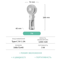 Ручной беспроводной вентилятор F4 с функцией увлажнения white